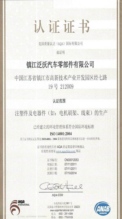 自觉地保护环境,走可持续发展的道路,已成为当今世界的主题。随着我国经济的发展,环境问题越来越受到社会各界的广泛重视。实施ISO14001国际标准是顺应经济一体化的必然趋势,是提升企业形象、改善环境管理状况的又一战略举措。本着保护环境,造福人类的宗旨,为不断提高企业员工的环境意识、管理和操作技能。经过公司各部门全体员工的共同努力,完成了策划、建立、运行、内审、管理评审、外部审核等相关工作,于7月顺利通过环境管理体系认证,通过 ISO14001认证,是泛沃公司发展的重要里程碑,它提升了泛沃在国际汽车零部件制造行业的竞争力。